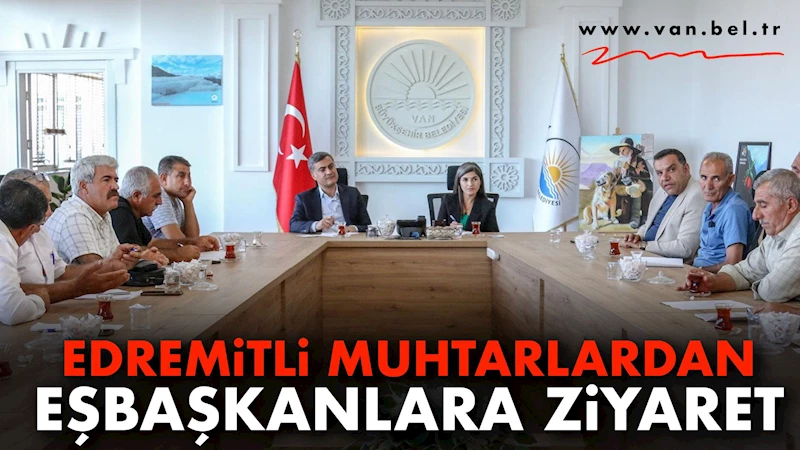 Van’ın Edremit ilçesi mahalle muhtarları, Van Büyükşehir Belediyesi Eşbaşkanları Neslihan Şedal ve Abdullah Zeydan’ı ziyaret etti. Ziyarette mahalle muhtarları, mahallelerinin sorun ve taleplerini eşbaşkanlara iletti. Şedal ve Zeydan, sorunları tek tek not alıp ziyaretlerinden dolayı muhtarlara teşekkür etti.