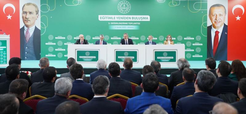 Toplantıda konuşan Bakan Mahmut Özer, "Eğitimle Yeniden Buluşma" projesiyle eğitim sisteminde kaydı bulunmayan öğrencelerin sisteme dâhil edilmesiyle ilgili olarak kapsamlı çalışmalar yapıldığını ve sahada çok güzel haberlerin ortaya çıktığını vurguladı.