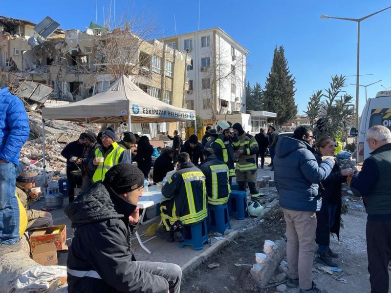 Eskipazar Kaymakamlığı ve Eskipazar Belediyesi koordinasyonunda, ilçemizin vefalı gençleri deprem bölgesi Adıyaman'da depremzedelerimize sıcak çorba, yemek ve sıcak çay ikramında bulunuyorlar. Karabük,Eskipazar Belediyesi