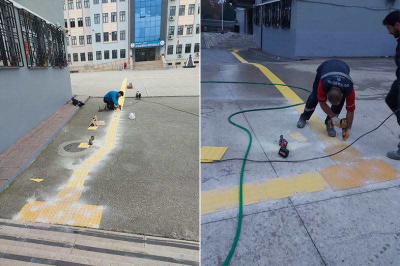 İki yaşında geçirdiği bir göz ameliyatı sonrasında görme engelli olan özel öğrenci Fatih Akçay, İzmit Kadıköy Mahallesi’ndeki 28 Haziran İlkokulu’na yakın bir noktada ikamet ediyor. Elindeki bastonuyla evinden okuluna rahat bir şekilde gelen Fatih, okul bahçesinde engelli yürüyüş yolu olmadığı için güvenli bir şekilde okul binasına girmekte zorlanıyordu. Bu durumunun ailesi tarafından sosyal medya üzerinden Başkan Büyükakın’a iletilmesi üzerine Park ve Bahçeler Dairesi Başkanlığı ekipleri duruma hızlı bir şekilde müdahale etti. ARTIK DAHA RAHAT YÜRÜYOR