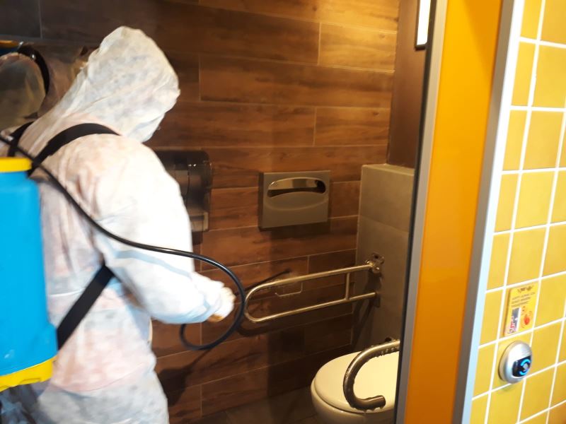Büyükşehir’e bağlı 30 uzman personelin görev aldığı ilaçlama çalışmalarında toplu yaşam alanlarından; sosyal tesisler, çadırkentler, petrol istasyonları, taziye evleri, tuvaletler ve ortak kullanım alanlarının tamamı dezenfekte edilirken çadırkentlerin belirli aralıklarla ilaçlaması yapılıyor.