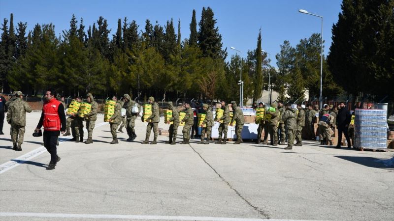 Kahramanmaraş merkezli depremlerden etkilenen Gaziantep'in İslahiye ilçesinde Jandarma Genel Komutanlığı'na bağlı helikopter, depremzedelere gıda ve erzak malzemesi yardımında bulundu.