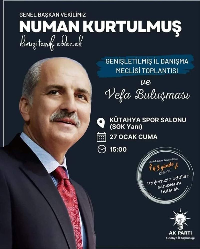 Genel Başkan Vekilimiz Sayın Numan KURTULMUŞ İlimizi Teşrif Edecek