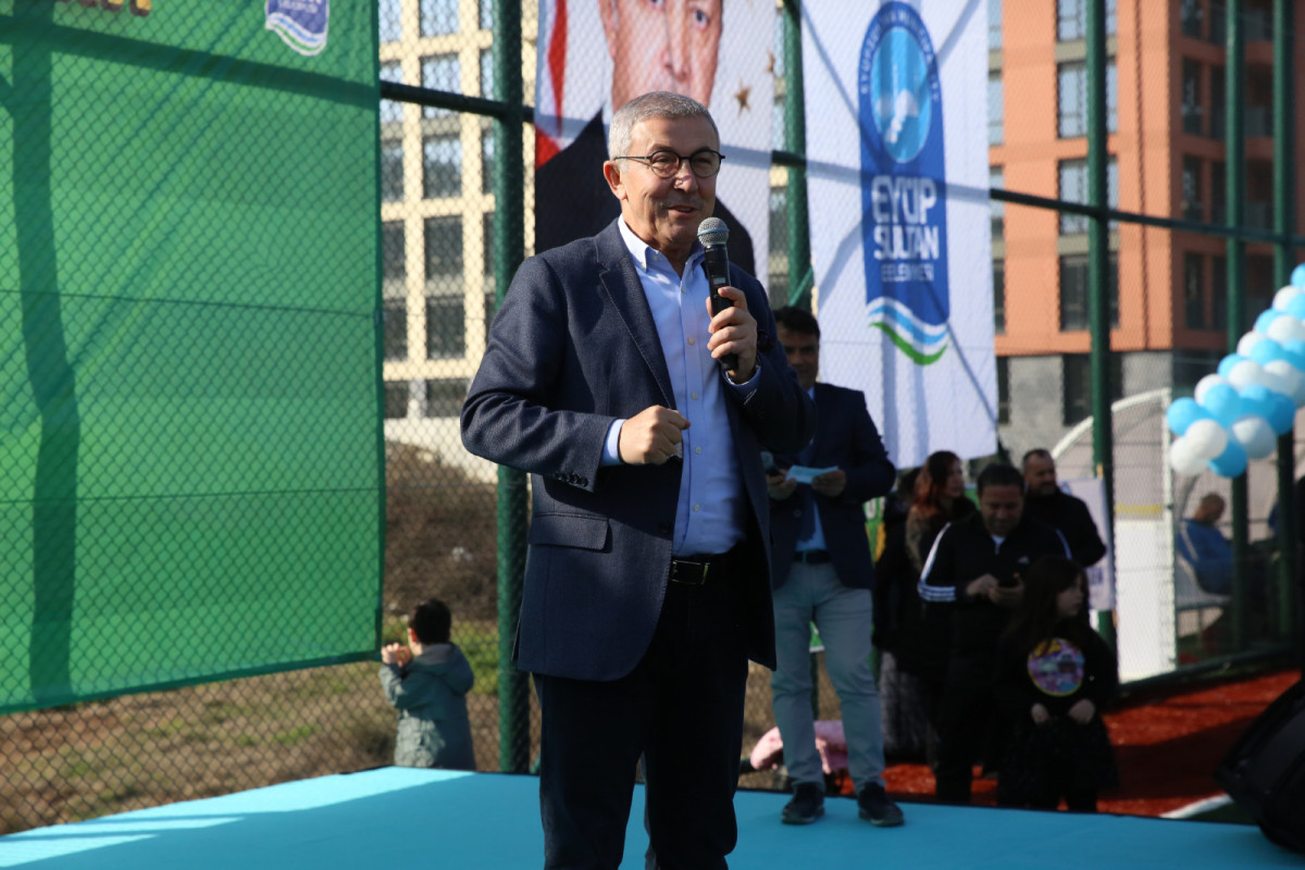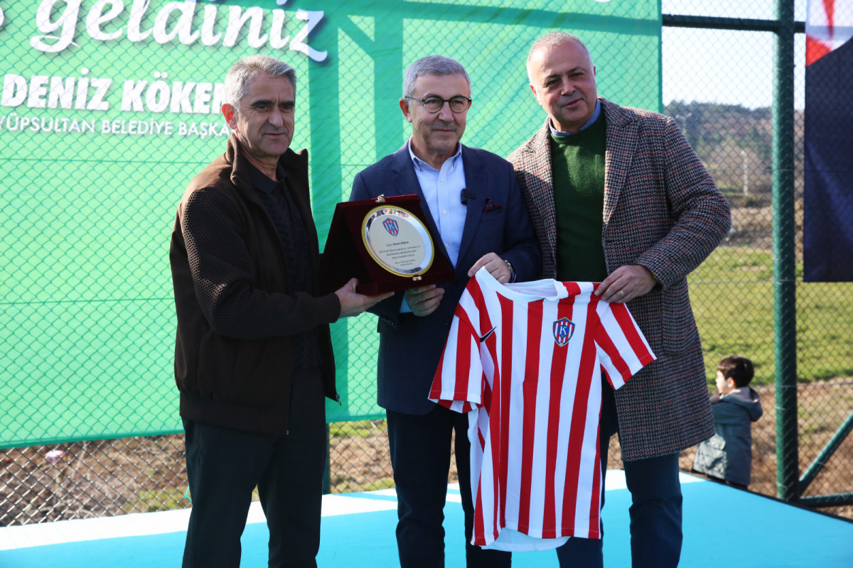 Yeni dönemde spor salonlarının yapımına ağırlık vereceklerini vurgulayan Başkan Deniz Köken, şunları söyledi: “Bu bizim 16’ıncı sahamız oldu. Dönemimizde 16 tane futbol sahası yapmış olduk. Saha işi bitti artık inşallah spor salonlarına geçiyoruz. Bir Araphan’ın sorunu var bir de Sakarya’daki Esenay’ın sorunu var, onları da çözeceğim inşallah. Ondan sonra salon sporlarına geçiyoruz. İlk spor salonunu Göktürk’e yapıyoruz. Hisar Okulları’nın arka tarafında çaprazında kalan alanımızın imar sorununu çözüyoruz ve spor salonumuzun yapımına başlıyoruz. Osmanlı Park’ın içine bir spor salonu oturtacağız. Artık salon sporlarında markalaşmamız lazım. Eyüp Stadı’nı da inşallah spor bakanlığımızla beraber hayata geçirmiş olacağız.”