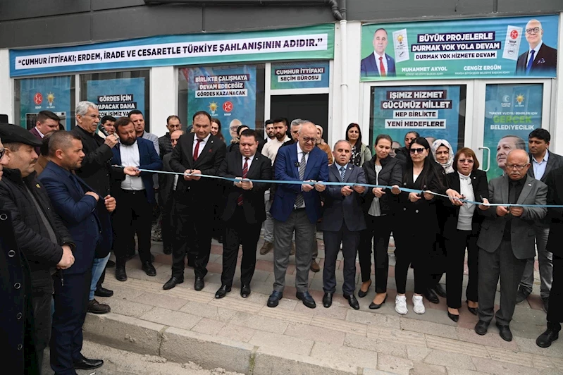 Manisa Büyükşehir Belediye Başkanı ve Cumhur İttifakı Büyükşehir Belediye Başkan Adayı Cengiz Ergün, Gördes Belediye Başkanı ve Cumhur İttifakı Gördes Belediye Başkan Adayı Muhammet Akyol ile birlikte Cumhur İttifakı Gördes Seçim Bürosunun açılışını gerçekleştirdi.