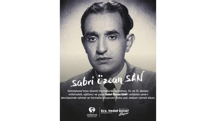 Gümüşhane Belediye Başkanı, eğitimci ve yazar Sabri Özcan San'ın vefat yıl dönümünde bir anma mesajı yayımladı. Başkan, mesajında San'ı rahmet ve minnetle andığını ifade ederek, onun Gümüşhane için önemli bir kültür ve eğitim insanı olduğunu vurguladı.