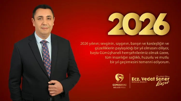 Gümüşhane Belediye Başkanı, yeni yıl vesilesiyle bir mesaj yayımlayarak 2026 yılının Gümüşhane'ye ve tüm hemşehrilere sağlık, mutluluk ve esenlik getirmesini temenni etti. Başkan, yeni yılın aynı zamanda kent için yeni başlangıçlar ve önemli başarılar anlamına gelmesini diledi.