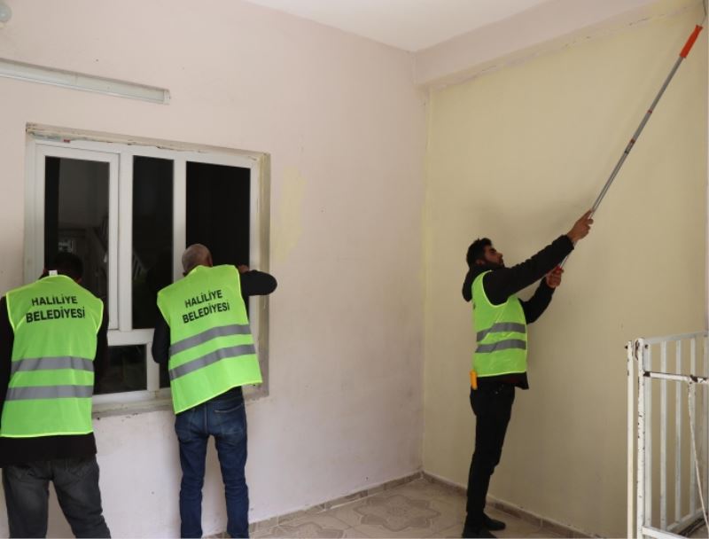 Şanlıurfa’da selin izlerini silmek için mahallelerde başlattığı dış cephe boyama çalışmalarını tamamlayan Haliliye Belediyesi, hanelerin içlerini de boyayarak, ilk günkü görünümlerine kazandırıyor.