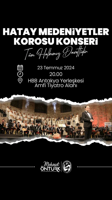 23 Temmuz Salı günü saat 20.00'de HBB Antakya Yerleşkesi Amfi Tiyatro Alanı’nda gerçekleştirilecek olan programda, Hatay'da birlikte yaşama kültürünü tüm dünyaya göstermek için 3 semavi din ve farklı mezhepten kişilerin katılımıyla kurulan Antakya Medeniyetler Korosu bir konser verecek.