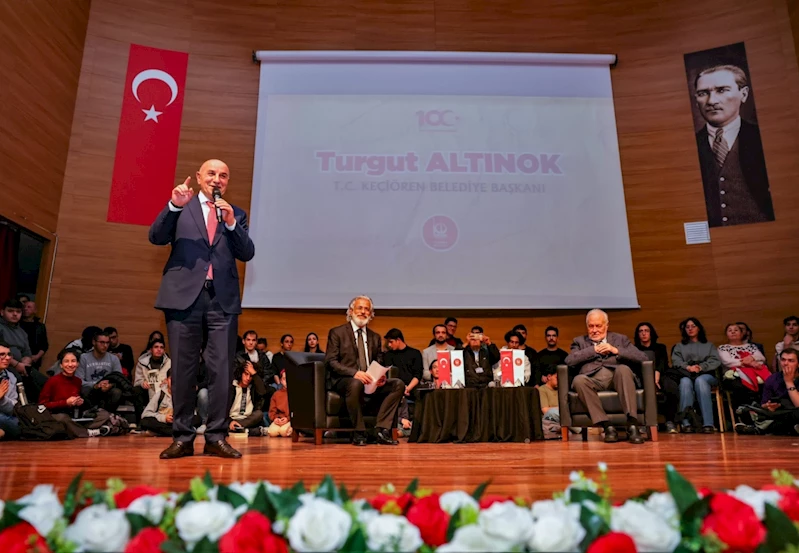 Açılış konuşmasını yapan Keçiören Belediye Başkanı Turgut Altınok, “Salonumuzun çoğunluğu genç, ne güzel! Umudumuz ve ikbalimiz sevgili gençlerimizi ve kıymetli vatandaşlarımızı böylesi önemli bir programda görmekten mutluluk duydum. Cumhuriyetimizin 100. yılının önemini ve Atatürk’ü İlber Ortaylı Hocamızdan dinleyeceğiz. Atatürk 27 Aralık 1919`da Ankara`ya daha sonra Keçiören’e geliyor. Milli Mücadele`yi burada yönetiyor. Misak-ı Milli Kararlarını burada alıyor. Keçiören’imiz Milli Mücadele’de bir merkezdir. Başta devletimizin kurucusu, banisi, dâhi insan Gazi Mustafa Kemal Atatürk`ü, Milli Mücadele kahramanlarımızı rahmet ve minnetle anıyorum. Atatürk gibi yiğit bir yüreği doğuran Zübeyde Ana’mızı, Ali Rıza Baba’mızı rahmet ve minnetle anıyorum, mekânları cennet olsun. Tarihe merak duyan böylesine genç bir topluluğu burada görmekten mutluluk duyduğumu bir kez daha ifade etmek istiyorum. Kıymetli hocama ve sizlere katılımlarınızdan dolayı teşekkür ediyor, hepinizi saygı ve hürmetle selamlıyorum.” dedi.