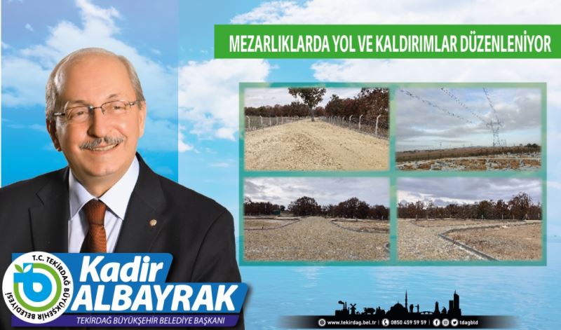 Mezarlıklarda rutin çalışmaların yanı sıra yol ve kaldırım düzenleme çalışmalarını da tamamladıklarını belirten Tekirdağ Büyükşehir Belediye Başkanı Kadir Albayrak, “Süleymanpaşa Yeni Şehir Mezarlığı ile Çorlu Havuzlar Mezarlığı’nda yol ve kaldırımlar yeniden düzenlendi. Çerkezköy ilçemizde ise yeni oluşturduğumuz mezarlık alanında da çalışmalarımızı tamamladık. İlçe mezarlıklarımızdaki çalışmalarımız bundan sonra da belirli bir program dahilinde devam edecek” dedi.