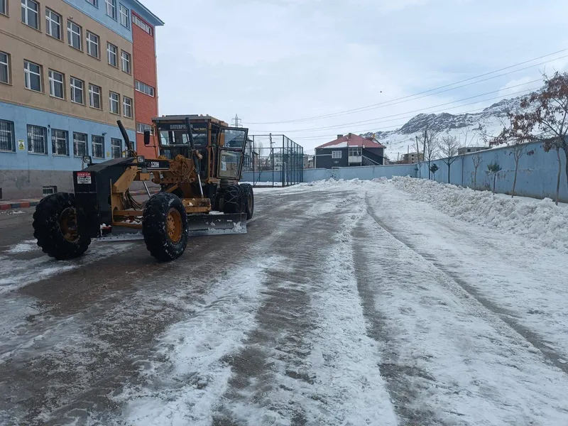 İpekyolu Belediyesi Fen İşleri Müdürlüğü ekipleri, yeni eğitim-öğretim döneminin başlamasıyla birlikte okul önlerinde kar temizleme ve yol açma çalışmalarını yoğun bir şekilde sürdürüyor.
