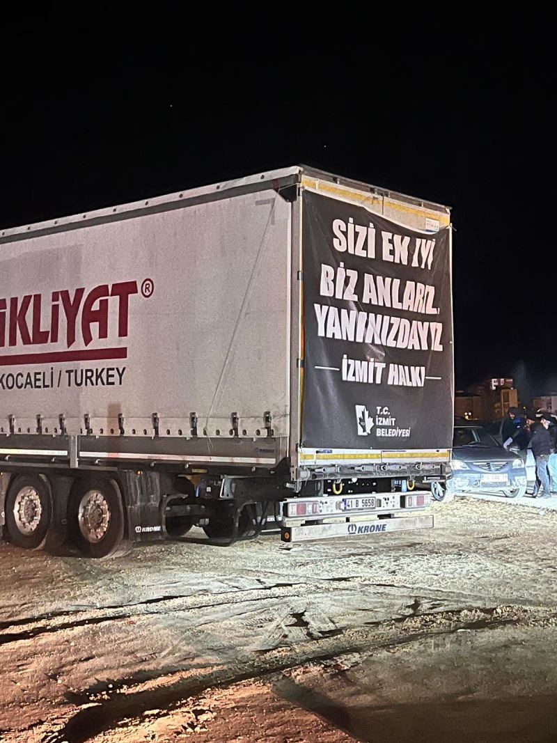 İzmit’ten deprem bölgesine gönderilen yardım tırlarından biri geçtiğimiz gece Adıyaman’a ulaşarak ihtiyacı olan vatandaşlara destek oldu