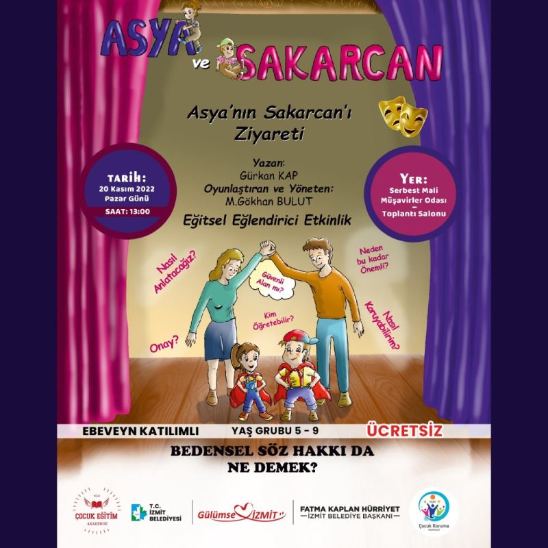 İzmit Belediyesi, 20 Kasım Dünya Çocuk Hakları Günü’nde düzenleyeceği etkinliklerle çocukları korumak ve yaşam koşullarını iyileştirmek amacıyla farkındalık oluşturacak. Bu etkinlikler kapsamında çocukların tiyatro ile cinsel istismardan korunmayı ve sınırlarını öğrenmesini hedefleyen koruyu-önleyici “Asya’nın Sakarcan’ı Ziyareti” adlı tiyatro oyunu sahnelenecek. Çocuk Eğitim Akademisi’nin kurucusu Eğitmen Gürkan Kap’ın kaleme aldığı oyun, 20 Kasım Pazar günü saat 13.00’te Kocaeli Mali Müşavirler Odası Toplantı Salonu’nda izleyicilerle buluşacak.