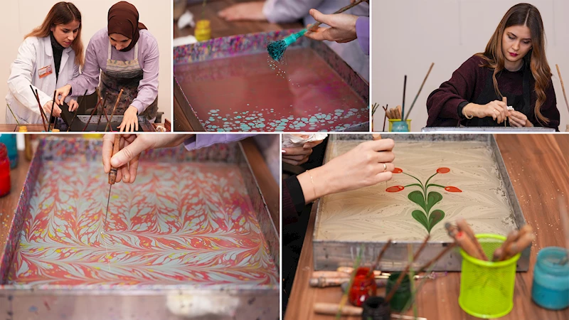 KURSİYERLER, EBRU SANATININ TÜM İNCELİKLERİNİ ÖĞRENİYORLAR