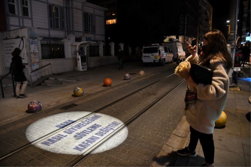 Kadıköy Belediyesi bu yıl 8 Mart Dünya Emekçi Kadınlar Günü mesajını farklı bir yöntemle verdi. Belediye çalışanlarının duygu ve düşüncelerinin yer aldığı 21 slogan, Kadıköy cadde ve sokaklarına yansıtıldı. Gecenin karanlığını aydınlatan sloganlar, kadınlar tarafından büyük beğeni topladı. Kimi bir daha baktı kimi de fotoğrafını çekti.