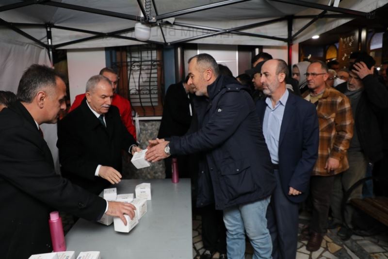 İlkadım Belediye Başkanı Necattin Demirtaş, Reğaip Kandili münasebetiyle vatandaşlara cami çıkışı kandil simidi dağıttı.