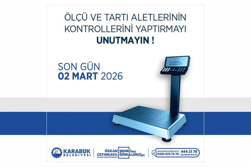 Karabük Belediyesi, esnafın kullandığı ölçü ve tartı aletlerinin kontrol ve muayenesi için bildirim alma sürecinin başladığını duyurdu. 3516 sayılı Ölçüler ve Ayarlar Kanunu'na göre, bu aletlerin iki yılda bir periyodik muayene ve damgalanması zorunlu.