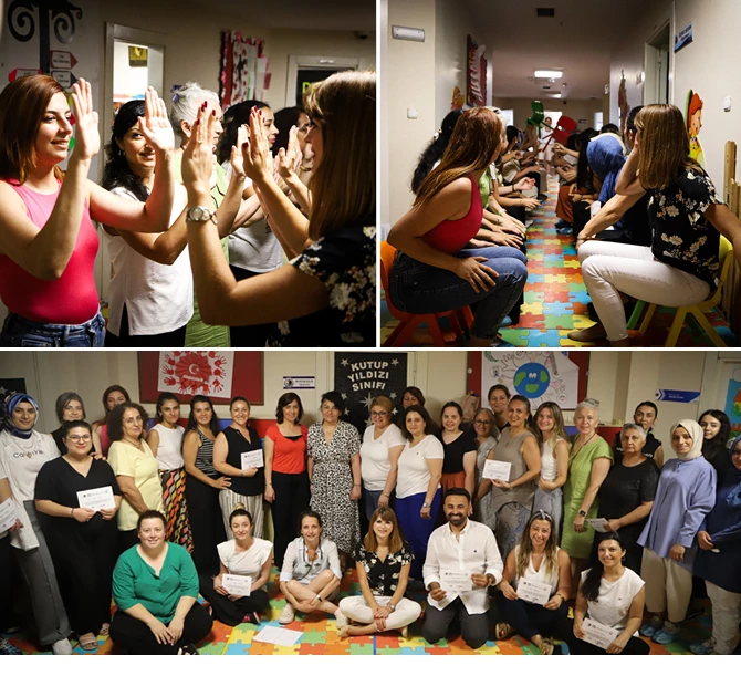 Maltepe Üniversitesi Öğretim Görevlisi Gülşah Yeşilyurt tarafından verilen eğitimde; öğretmenlerin bütüncül bir bakış açısıyla çocuklarla ilişkilerini güçlendirmek, çocukların gelişimlerini, akademik performanslarını anlama teknik ve yöntemleri oluşturuldu. Teorik ve uygulamalı bir şekilde ilerleyen program süresince, eğitimde yer alan etkinlikler ile çocukların bireysel farklılıklarını tanımalarının yanı sıra; sosyal ve duygusal gelişimlerini desteklemek ve grup dinamiği oluşturabilmek için bir araç olarak ‘oyun’ kullanıldı.