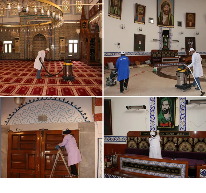 Kartal’ın 20 mahallesinde kolları sıvayan ekipler, ibadethanelerin ortak kullanım alanlarında detaylı iç ve dış temizliği gerçekleştiriyor. Belirli bir program dâhilinde çalışan ekipler, camilerin ve cemevlerinin iç temizliğinin yanı sıra; duvarlar, merdivenler, kapılar, tırabzanlar, camlar ve abdest alınan bölümler olmak üzere titizlikle temizle çalışmalarını yürütüyor. Ayrıca halılar da yıkama makinaları ile yıkanarak kurutuluyor.