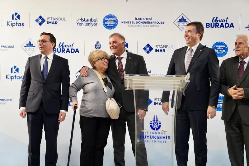 Nuri Aslan’ın konuşmasının ardından, sembolik olarak bazı hak sahipleri kentsel dönüşüm sözleşmesini imzaladı. Çatalca Belediyesi ve KİPTAŞ arasındaki protokol kapsamında yenilenecek İlke Sitesi’nin yerine, 220 konuttan oluşan, depreme dayanıklı yeni binaların temelinin kısa süre içinde atılması planlanıyor.