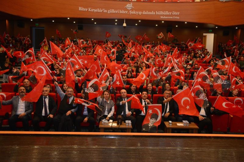 Bu akşam burada, Kırşehir Belediyesi Oratoryo ve Zeybek Gösterisi ve Kırşehir Belediyesi Öğretmenler Korosu tarafından seslendirilecek olan Atatürk’ün Sevdiği Şarkılar programının hazırlanmasında emeği geçen herkesi kutluyor; hepinize sevgi ve saygılarımı sunuyorum.”