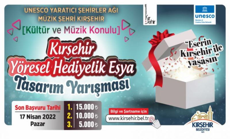 ile ilgili hediyelik eşya konusunda uluslararası ve ulusal anlamda ödüllü bir yarışma düzenlenmiştir. Yarışmaya katılım tarihleri 17 Şubat 2022 (başlangıç ) - 17 Nisan 2022 (son başvuru ) dir. Detaylı Bilgi www.kirsehir.bel.tr Şanlıurfa,