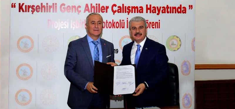 Konuşmaların ardından "Kırşehirli Genç Ahiler Çalışma Hayatında" projesi iş birliği protokolü imzalandı. Törene, Kırşehir Ticaret ve Sanayi Odası Başkanı Mustafa Yılmaz, diğer odaların yetkilileri ve daire müdürleri katıldı.