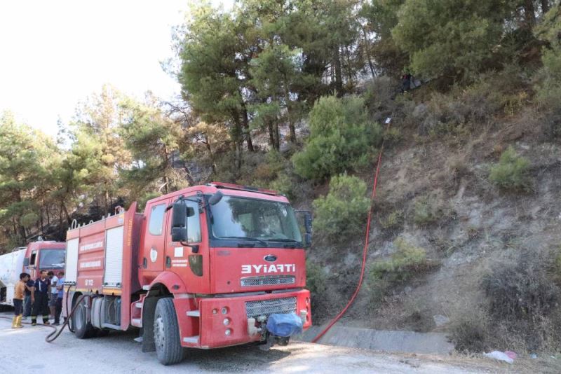 Hatay Büyükşehir Belediyesinin İtfaiye ekipleri, Kisecik Mahallesinde çıkan yangına müdahalesini sürdürüyor.
