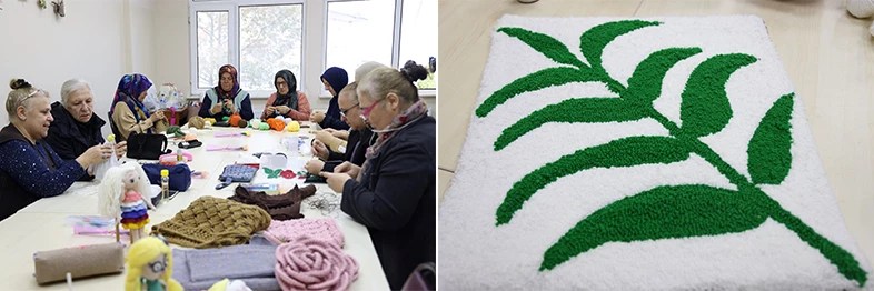 Zekra Gülsaran da, “Emekli mali müşavirim, uzun zaman özel sektörde çalıştım, o zamanlar bu tarz kurslara çok özeniyordum. Emekli olunca hemen yazıldım. Burası psikolojik olarak birer terapi merkezi. Burada el becerilerimizin farkına varıyoruz. Geri dönüşümle ilgili ürünler yapmak hoşuma gidiyor. Şu anda yaptığım birçok ürün geri dönüşümden oluşmakta. Bize bu imkânı sunan Kocaeli Büyükşehir Belediyesine çok teşekkür ediyorum” sözleriyle duygularını aktardı.TUFTİNG NEDİR?
