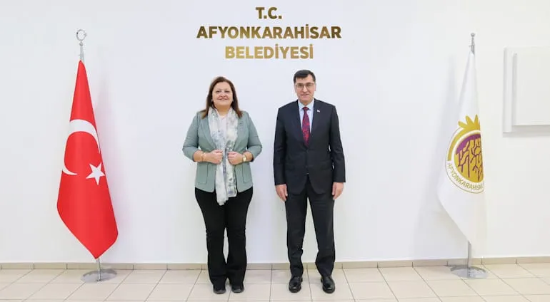 Kütahya Belediye Başkanı Eyüp Kahveci, Afyonkarahisar Belediye Başkanı Burcu Köksal'ı makamında ziyaret etti. İki başkan, bu ziyaretle yerel yönetimler arasındaki diyaloğu güçlendirmeyi amaçladı.