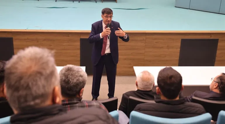 Kütahya Belediyesi tarafından düzenlenen Hafriyat Yönetim Bilgi Sistemi (HYBS) Bilgilendirme Toplantısı, Belediye Başkanı Eyüp Kahveci ve sektör temsilcilerinin katılımıyla gerçekleştirildi. Mühendisler, mimarlar ve müteahhitlerin de yer aldığı toplantıda, sektörün dijital dönüşüm yolculuğunun önemli bir adımı olan yeni sistemin detayları paylaşıldı.