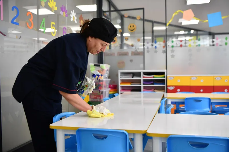 Kreşlerde yürütülen kapsamlı temizlik çalışmalarıyla çocukların kış aylarında bulaşıcı hastalıklardan korunması hedefleniyor. Tüm kreşleri kapsayan bu çalışmada yüzey temizliği, dezenfeksiyon, hijyen kontrolü ve bakım işlemleri özenle uygulanıyor.