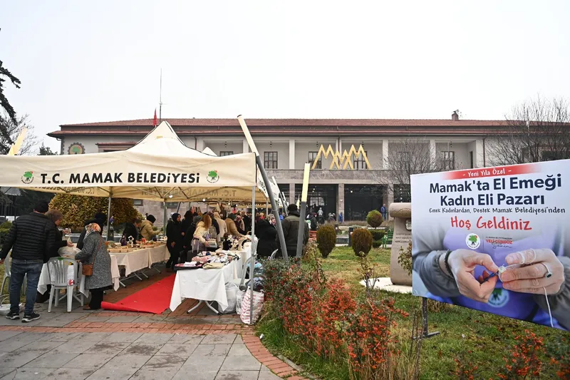 Mamak Belediyesi, üreten kadınlara destek olmaya devam ediyor. "Kadın Eli El Emeği Pazarı", yeni yıla özel konseptiyle Mamak'ın ilk konservatuvarı olan Musiki Muallim Mektebi bahçesinde vatandaşlarla buluştu. Belediye, daha fazla insana ulaşarak üretici kadınlara destek sağlamayı hedefliyor. Ayrıca, hemşehrileri yılbaşı hediyelerini el emeği ürünlerden almaya davet etti.