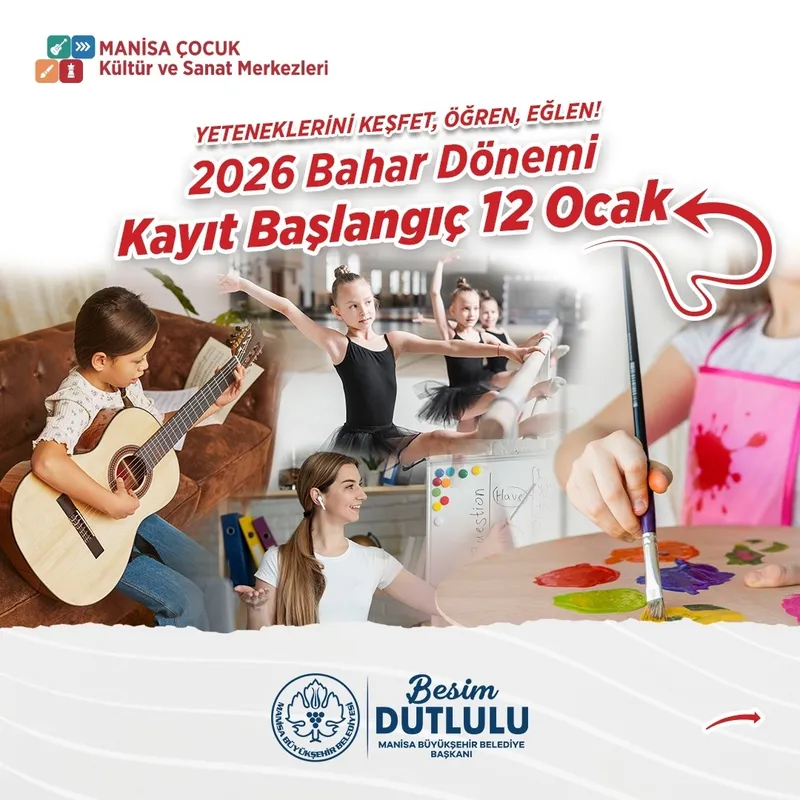 Manisa Büyükşehir Belediyesi'ne bağlı Çocuk Kültür ve Sanat Merkezleri'nde (ÇKSM) 2026 yılı bahar dönemi kayıtları başladı. Kayıtlar, il genelindeki 20 merkezde gerçekleştirilebilecek.