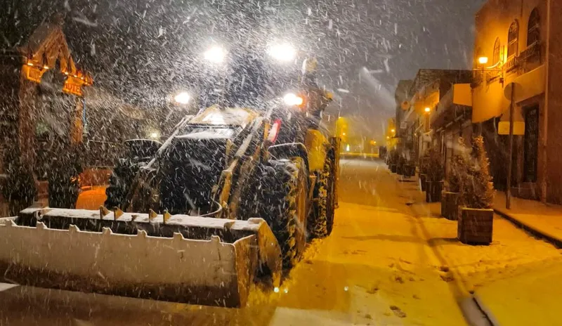 Mardin'de etkili olan kar yağışı, belediye ekiplerini gece boyunca sahada tuttu. Mardin Belediyesi'nin kar mücadele araçları ve personeli, kent genelinde ulaşımın aksamaması için yoğun bir çaba gösterdi.
