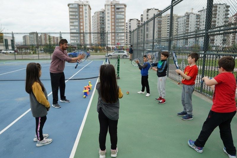 Mustafa Palancıoğlu, belediyenin tenis kurslarına katılan çocukların, spor