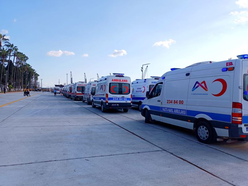 Ambulans ve sağlık ekiplerinin bir kısmını deprem bölgesine gönderen Büyükşehir Belediyesi, ambulanslarının bir kısmını da Hatay’dan gelen yaralıları taşımak üzere görevlendirdi. 8 ambulans ile limanda bekleyen Mersin Büyükşehir Belediyesi’nin sağlık ekipleri, yaralıları en hızlı şekilde hastanelere sevk ediyor.