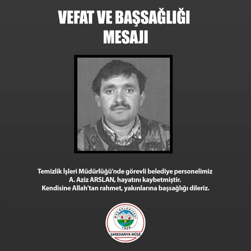 Muş Belediyesi, bir personelinin vefatı nedeniyle başsağlığı mesajı yayımladı.