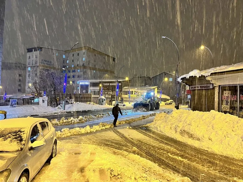 Muş Belediyesi ekipleri, yoğun kar yağışına karşı sahada çalışmalarını sürdürüyor.