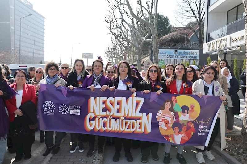 8 Mart Dünya Kadınlar Günü’nde Nilüferli kadınlar, eşitlik ve özgürlük talepleriyle alanlardaydı. Nilüfer Belediyesi ve Nilüfer Kent Konseyi Kadın Meclisi’nin “Neşemiz Gücümüzden” sloganıyla düzenlediği Fatih Sultan Mehmet Bulvarı’ndan başlayan yürüyüş, Nilüfer Halk Evi önündeki Demet Tuğcu konseriyle sona erdi.