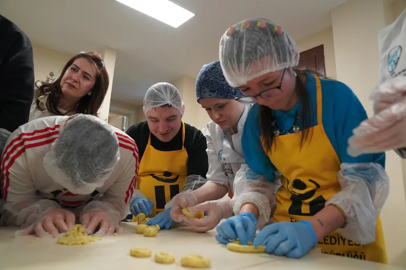 Tepebaşı Belediyesi Melih Savaş Yaşam Köyü'ndeki İbrahim Ethem Kesikbaş Engelliler Montaj Atölyesi öğrencileri, Yaşar Eğitim ve Kültür Vakfı Mesleki ve Teknik Anadolu Lisesi Yiyecek-İçecek Hizmetleri bölümü öğrenci ve öğretmenleri ile buluştu. Montaj atölyesinin mutfağında düzenlenen etkinlikte katılımcılar, tatlı ve tuzlu olmak üzere iki çeşit kurabiye hazırladı.