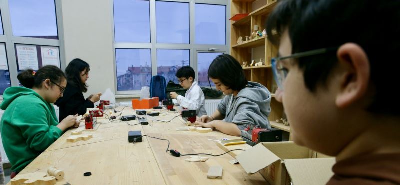 BİLSEM'ler bünyesinde bu yıl faaliyete başlayan ahşap tasarım atölyesinde öğrenciler ahşabı tanıyarak doğal ürünlerle temas etme imkânı buluyor.