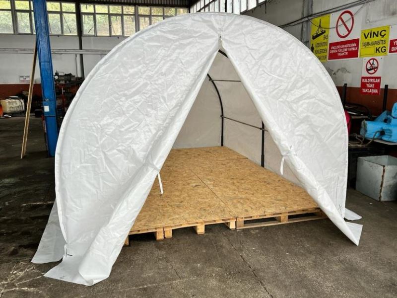 çadırlık çadır kent için Rize Belediyesi atölyesinde imalat çalışmaları devam