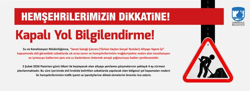 Altyapı yenileme çalışmalarının 2 Şubat 2026 Pazartesi günü başlaması ve yaklaşık dört ay sürmesi planlanıyor.
