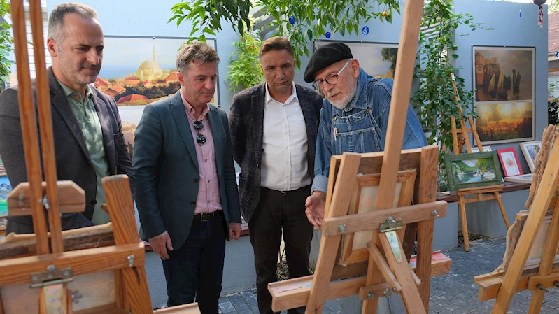 Başkan Vekili Çelik ve beraberindekiler, sergilenen tabloları tek tek inceleyerek Ressam Bölükemini'den bilgi aldı.