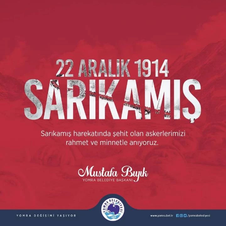 Sarıkamış Harekatı'nın 109. yıl dönümünde, kahraman şehitlerimizi rahmet ve minnetle anıyoruz.