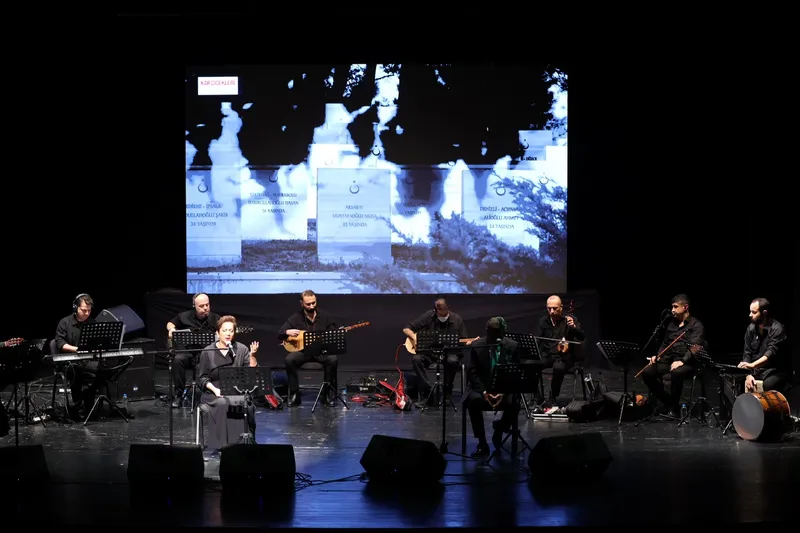 Programda, anlatıcı Başak İkiz, Sarıkamış’ta yaşanan destanı ve tarihe kazınan acıyı güçlü anlatımıyla sahneye taşıdı. Usta sanatçılar Aysun Gültekin ve Tuncay Kemertaş tarafından seslendirilen ağıtlar dinleyenleri derinden duygulandırdı. Her bir ezgi ve söz, şehitlerin hatırasını canlı tuttu.