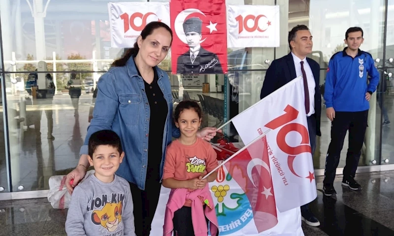 Manisa Büyükşehir Belediyesi, Cumhuriyetimizin 100. Yılı dolayısıyla Manisa Şehirlerarası Otobüs Terminali’nde anlamlı bir etkinliğe imza attı. Terminal esnafı, yolcular ve otobüs şoförlerine Türk Bayrağı ve Türk Bayraklı rozet armağan eden Ulaşım Dairesi Başkanlığı, vatandaşların Cumhuriyet Bayramı’nı kutladı.