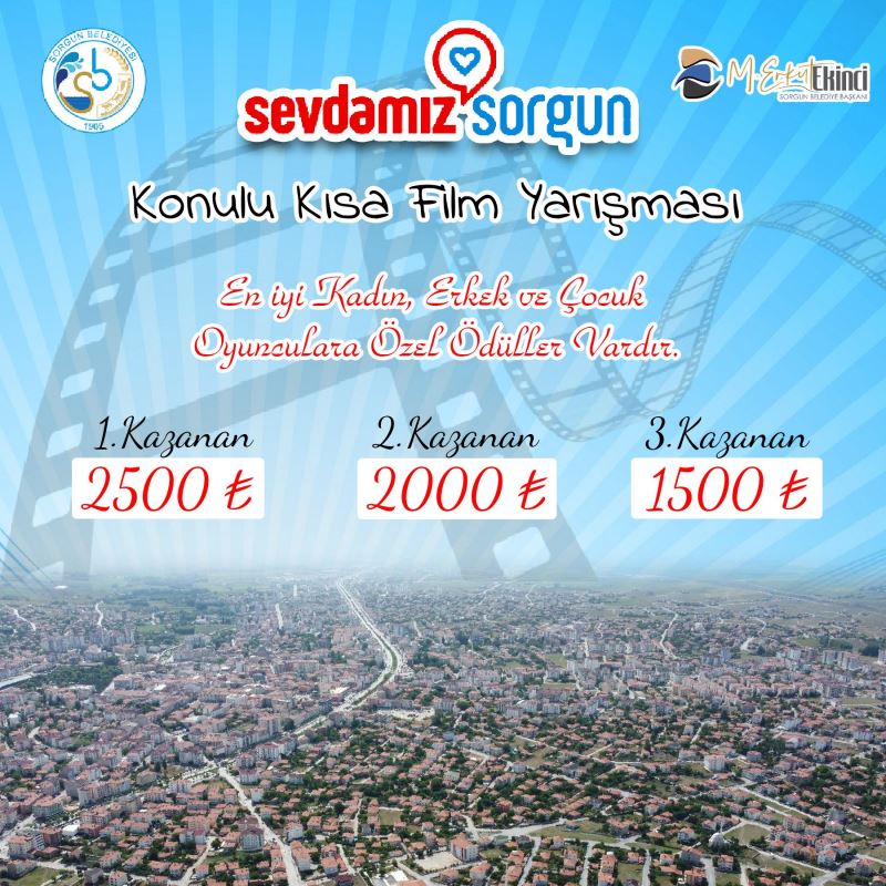 Film kısa anlamı BÜYÜK"Sevdamız Sorgun" temalı kısa film yarışması düzenliyoruz. İçinizdeki yönetmene, oyuncuya, tek kişilik dev kadroya kendini gösterme imkanı veriyoruz. Bizim Sorgun'a olan sevdamızı anlatmaya kelimeler yetmez diyorsanız filmini çekin çok güzel işler çıkacak biz eminiz Vep sitemizde bulunan başvuru formunu doldurarak belediyemiz özel kalem birimine elden teslim edilecektir. Son katılım 20 Haziran Pazartesi günü.